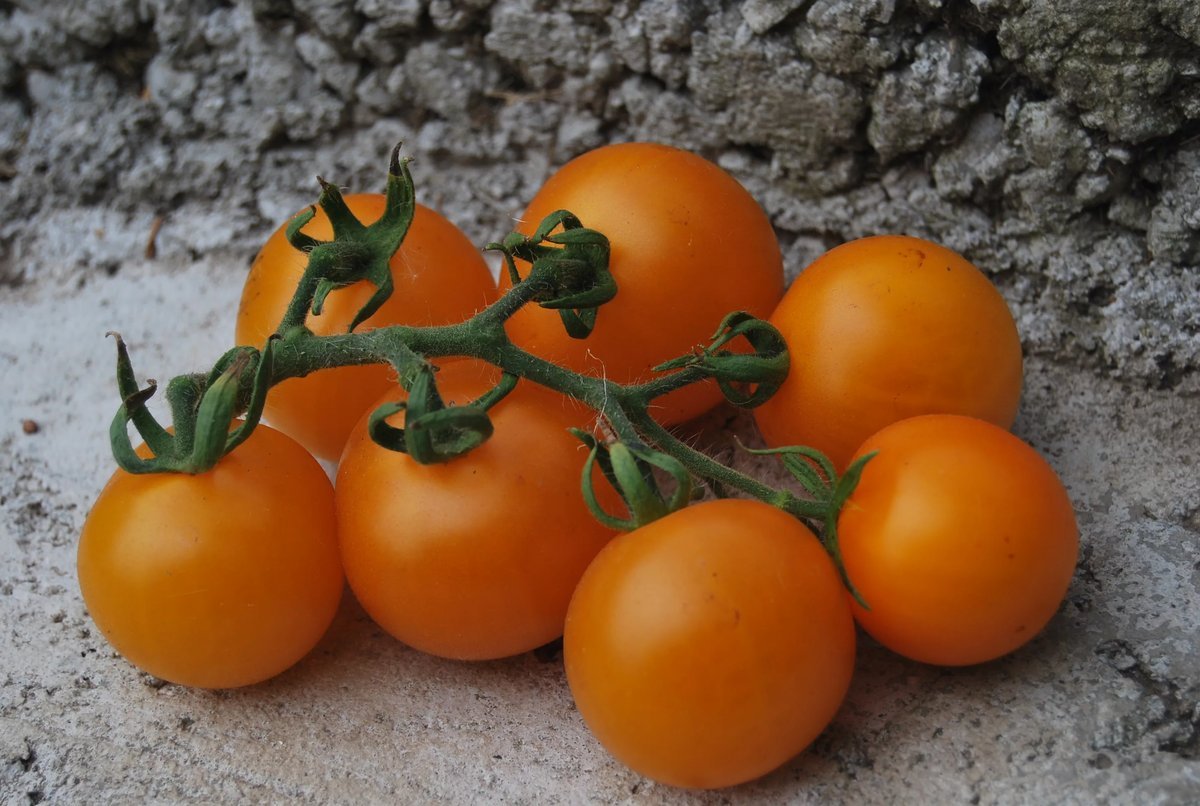 Мандаринка, этому сорту требуется подвязка и пасынкование. На одной кисти формируется до 10 плодов, размер каждого около 100 гр. Созревают через три месяца после посева семян в грунт. Высокорослый кистевой сорт с плодами ярко оранжевого цвета. Вкус приятный с достаточным содержанием сахаров. Помидоры ровненькие настоящие мандаринки.