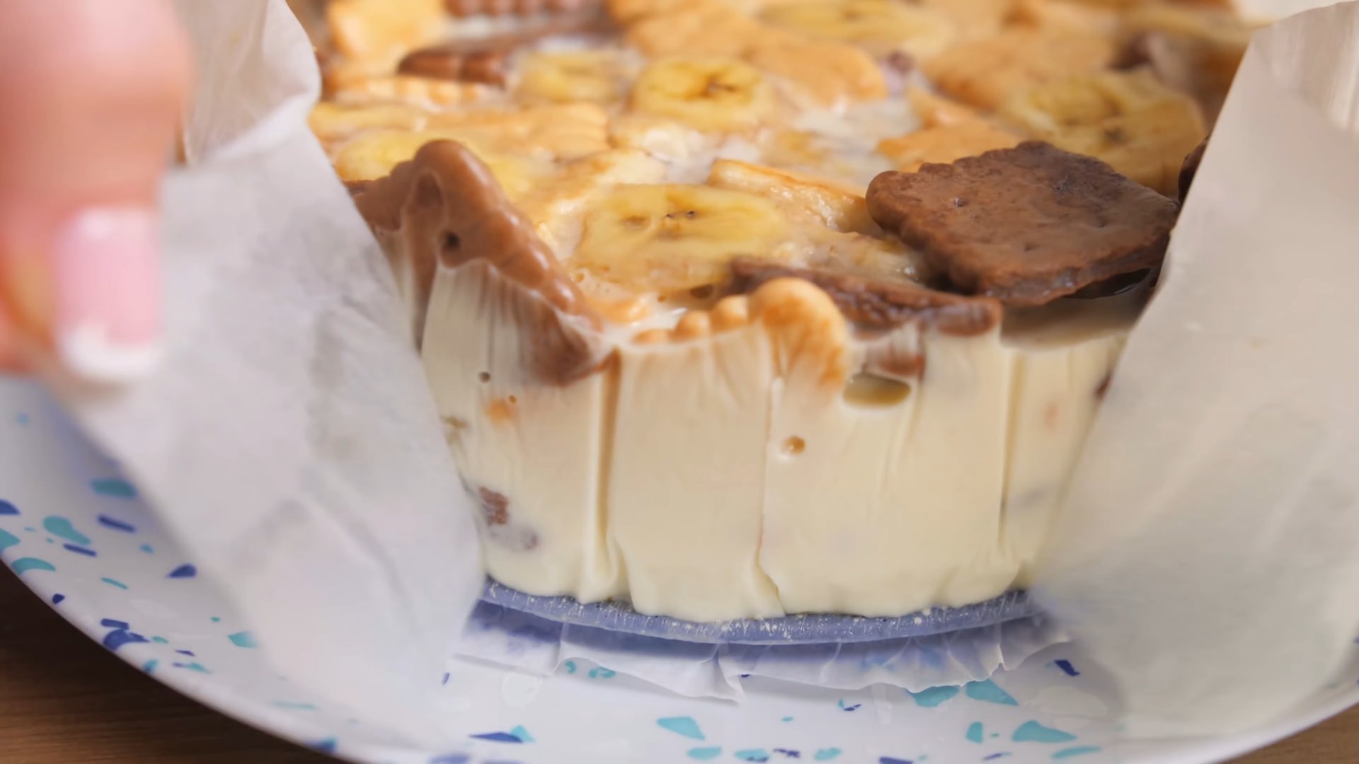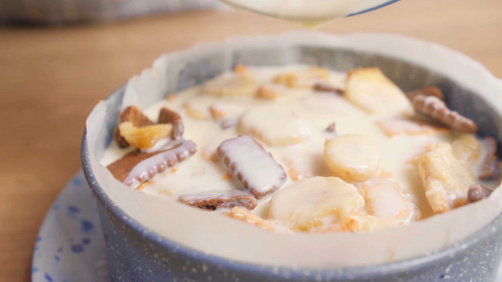 Печенье я высыпала в отдельную емкость с бортиками и там буду крошить его руками.