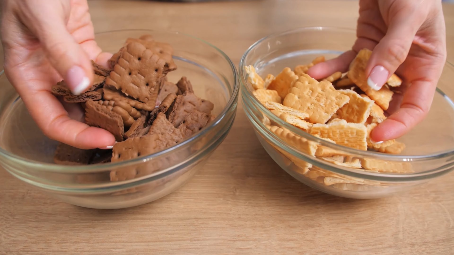 Нам понадобится еще два вида печенья. Это темное песочное и светлый сорт.