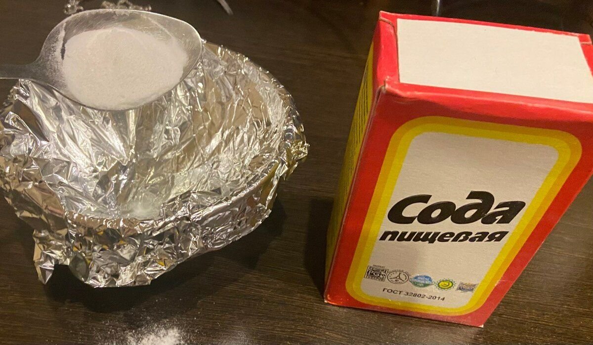 4. Теперь берём пищевую соду — 1 столовую ложку, насыпаем в миску