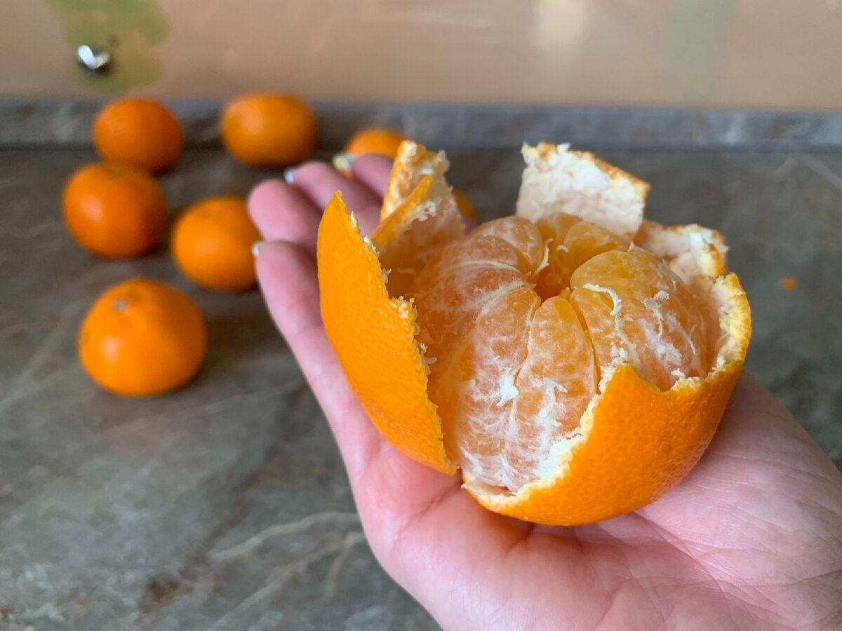 Сладкий мандарин — это спелый, а спелый — мягкий. Фрукт обязательно перед покупкой нужно пощупать. Мягкий на ощупь он должен иметь пустое пространство между мякотью и кожурой. Кожура, чаще — толстая.