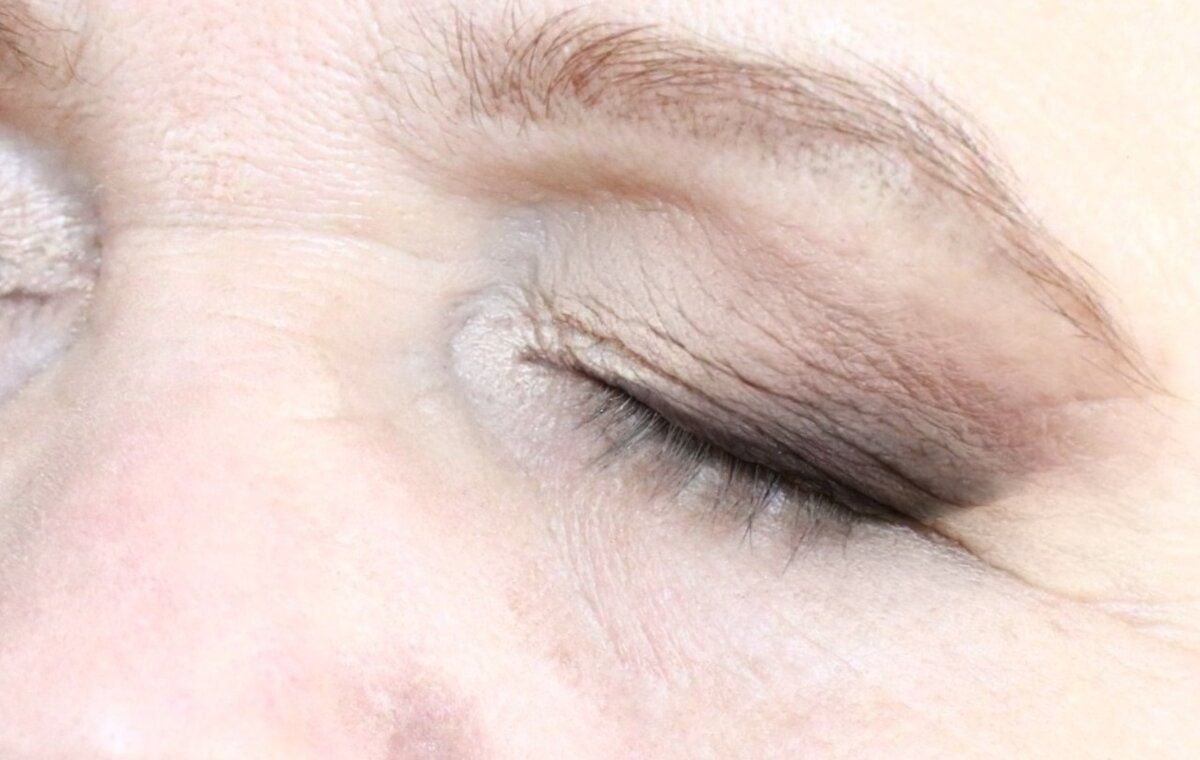 В первую очередь важно подготовить кожу век к макияжу — очистить, нанести праймер, затонировать. Обязательно проработать консилером зону внутреннего уголка глаза, чтобы осветлить ее.